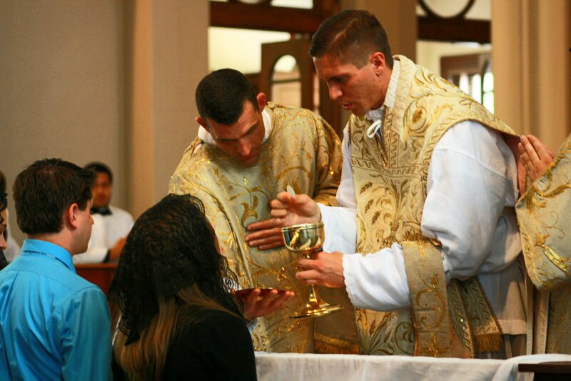 Gradually, however, we are beginning to see the recovery of the traditional manner of receiving Holy Communion: on the tongue while kneeling.