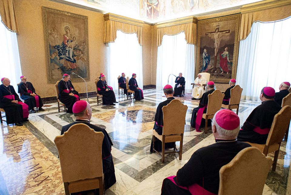 [Photo credit: CNS/Vatican Media-from last years “ad limina” visit to Rome by the French bishops].