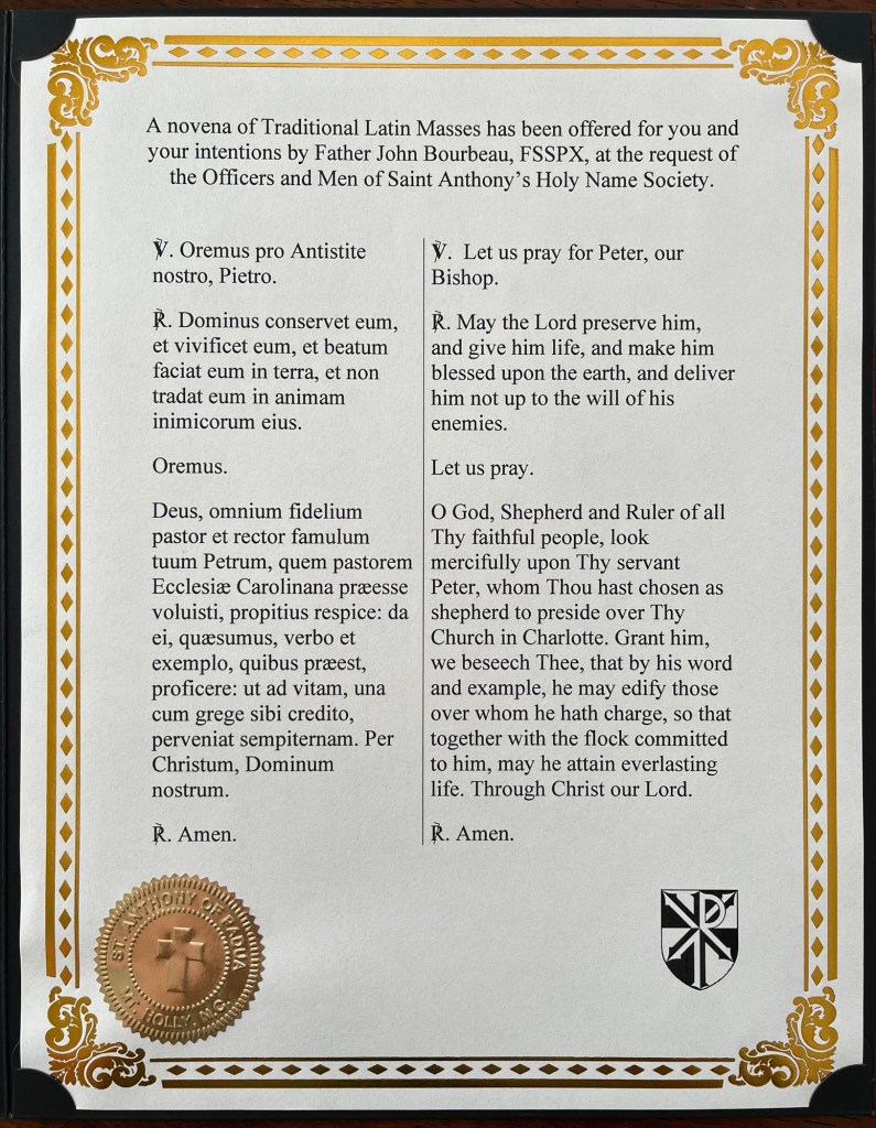 SSPX Chapel has Novena of Latin Masses Said for Local Bishop