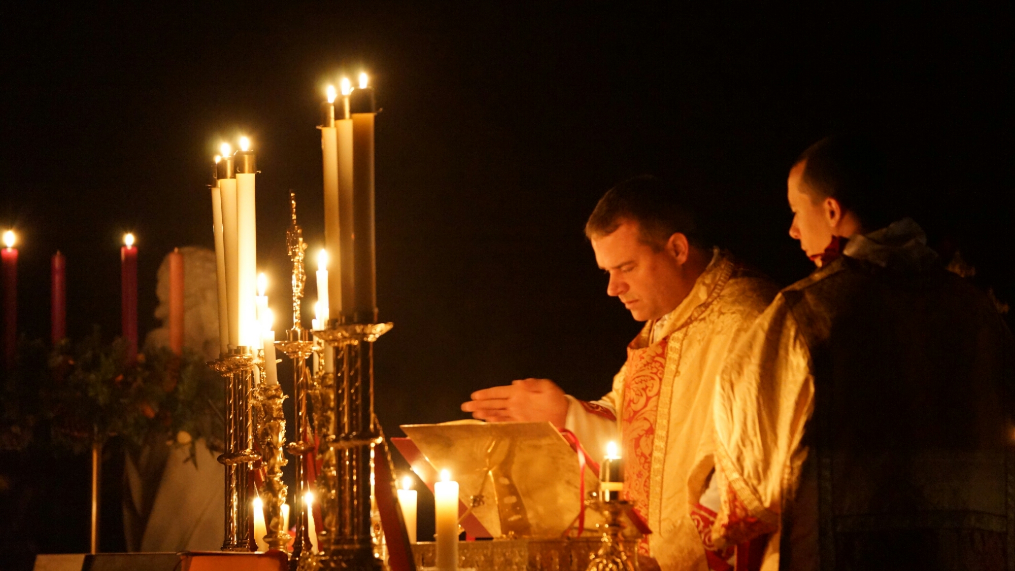 Saturday marked the fourth consecutive year that a Rorate Mass has been offered at St. Thomas Aquinas Church in Charlotte, North Carolina. As the Mass began before sunrise, the Church was illuminated only by candlelight. Because the Rorate is a votive Mass to honor the Blessed Virgin Mary, white vestments are worn instead of Advent violet.